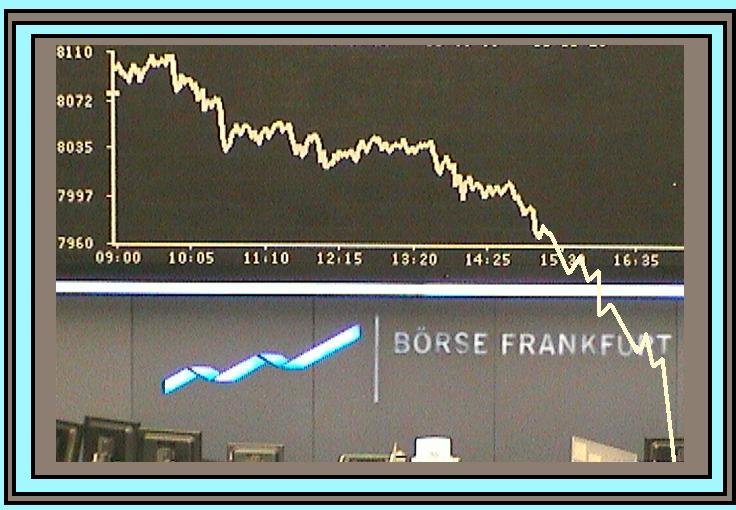 Fast täglich wechselt die Stimmungslage,vielleicht gibts morgen schon wieder eine Gegenbewegung,eine wirklich gute Wette ist das zugegeben nicht,aber dafür dürft ihr mich steinigen,wenn der DAX am Freitag zum Wochenschluß nicht glänzend dasteht (auch wenn das verfluchte ATH nicht erreicht wird,und erstmal auch nicht erreicht werden muß...)