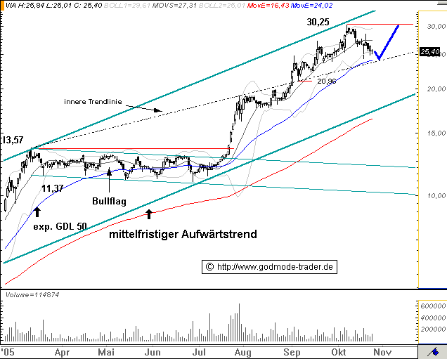 Jedoch dient die Kapitalerhöhung, die rund 45 Millionen Euro in die Kasse spülte, der weiteren Expansion des wachstumsstarken Unternehmens. Die Mittel sollen in den Bereich „Portfoliohandel mit Wohnimmobilien“ fließen. Hier verspricht sich das Management in den kommenden Jahren attraktive Gewinnpotenziale. Ohnehin scheint das Wachstum der Kölner ungebrochen: Mit schöner Regelmäßigkeit werden neue Immobilien gekauft, zuletzt Ende September / Anfang Oktober rund 6.500 Einheiten, die dann anschließend direkt in die Vermarktung gehen. Positive Nachrichten dürften daher in Kürze folgen. Schließlich hat das Management in der Vergangenheit stets mit cleveren und innovativen Ideen für positive Überraschungen gesorgt. Zudem dürfte die Nachfragesituation für deutsche Wohnimmobilien von Seiten ausländischer Anleger unvermindert anhalten. Mit Blick auf die aktuelle Fundamentalbewertung, das 2006er KGV liegt bei 16, stehen die Börsenampeln also weiter auf Grün. Neue Höchstkurse sind noch im laufenden Jahr realistisch.