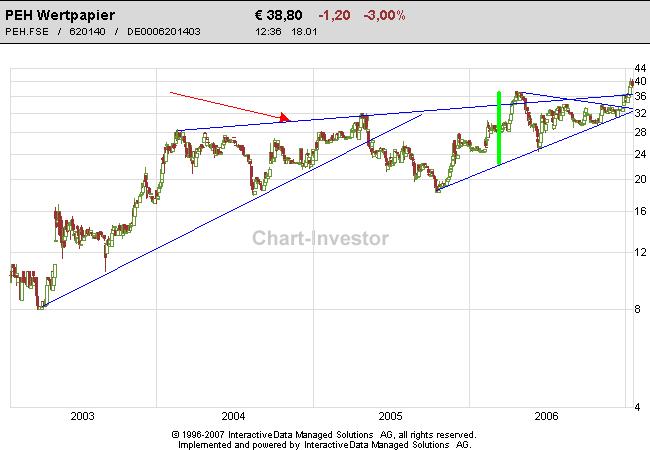 Laut Herrn Stürner bestätigt der Kursverlauf der Aktie die gute Ergebnisentwicklung der letzten Jahre. Nach seiner Ansicht ist die PEH eine klassische Value-Aktie. Seit Anfang 2003 legte nicht nur der Kurs, sondern auch die Dividende um 400 Prozent zu. Damit konnten sowohl der DAX als auch der SDAX deutlich outperformt werden. In den letzten sechs Monaten entwickelte sich die PEH-Aktie 20 Prozent besser als der Bankensektor, bezogen auf fünf Jahre waren es sogar 100 Prozent.