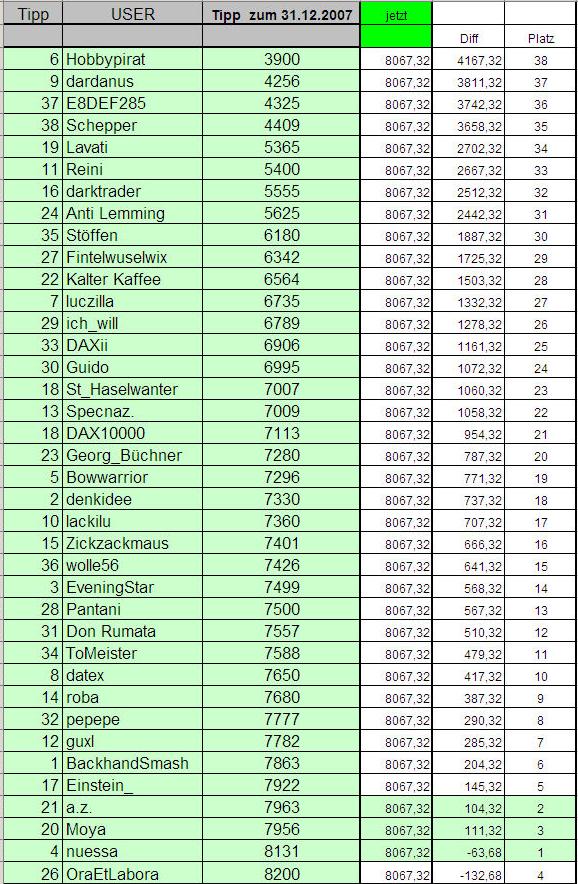 695.DAX Tipp-Spiel, Montag, 07.01.08, 17.45 Uhr, DAX ....???