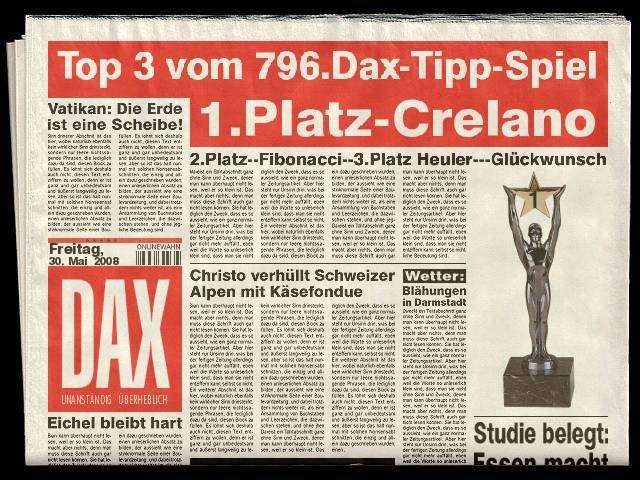 abgegebene Tipps zum 796.DAX Tipp-Spiel, Freitag, 30.05.08, 17.45 Uhr, DAX ....???