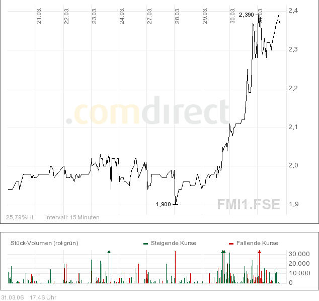 Kurs von 3,60 bei einem KGV von 15.Für 2007 wurde ein Gewinnsprung von 80%