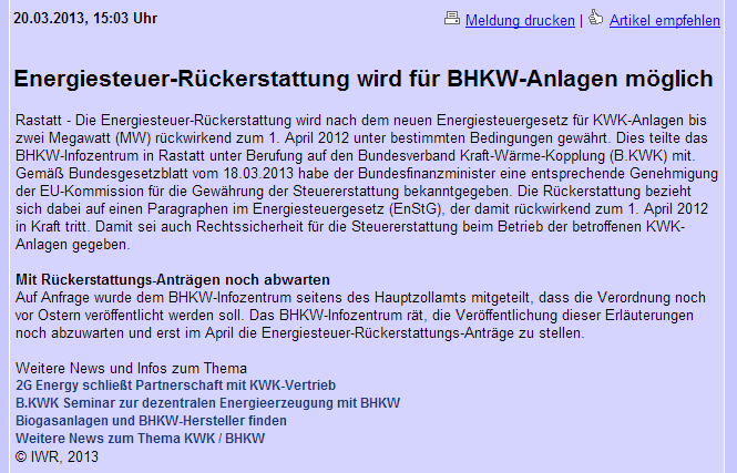 der 2G im fossilen und regenerativen Energiemarkt für