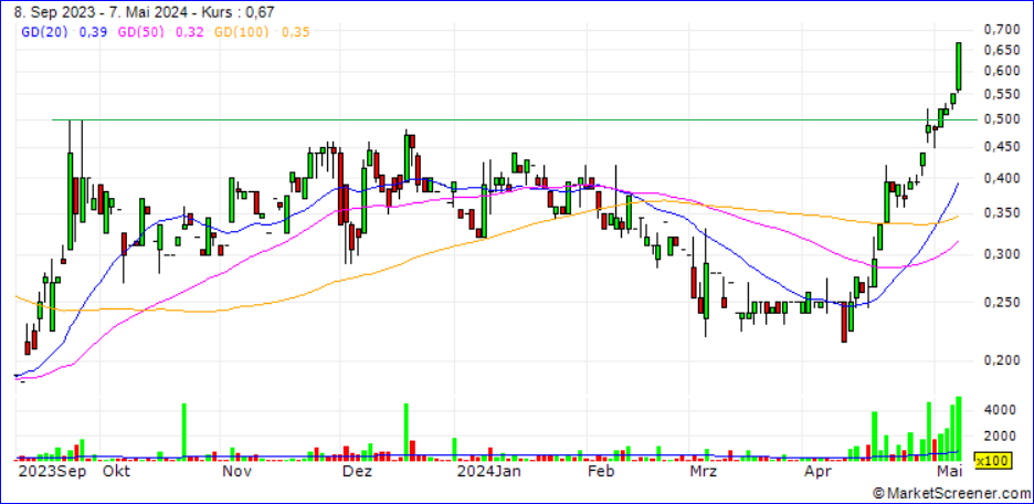 ... doch tatsächlich schon etwas gestiegen, doch welche "News" diese Steigung ausgelöst haben könnten, bleibt mir weiterhin ein Rätsel - das sich vielleicht später irngendwann auflösen lässt ...