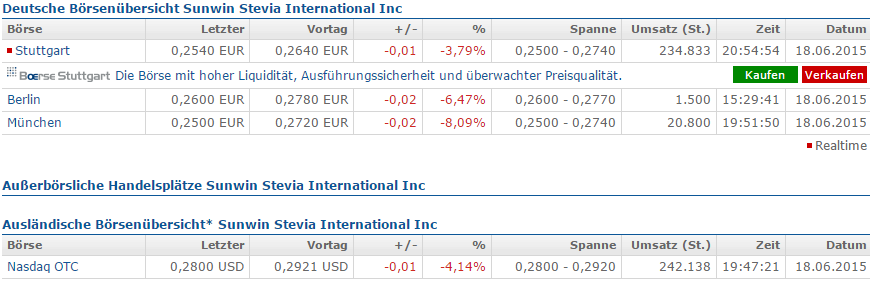 Jedenfalls steht die selbsterklärte "Natürlichkeits-Garantie" von Capri-Sonne, bislang einer Verwendung von Steviolglycosiden im Wege. Ist aber deren freie Entscheidung, diese ggf. "aufzuweichen". Worauf ja hier viele (bislang vergeblich) warten. Den Ist-Zustand sollte man aber zur Kenntnis nehmen. Kraftfoods, als Lizenznehmer für die USA, hat ja andere Bedingungen. Ob die ihren "traditionellen" Stevia-Supplier Purecircle allerdings durch Sunwin ersetzen, wage ich zu bezweifeln. Theoretisch möglich ist es selbstverständlich. Vielleicht findet sich ja Erhellendes im nächsten 10K, oder einer anderen Meldung durch Sunwin.
