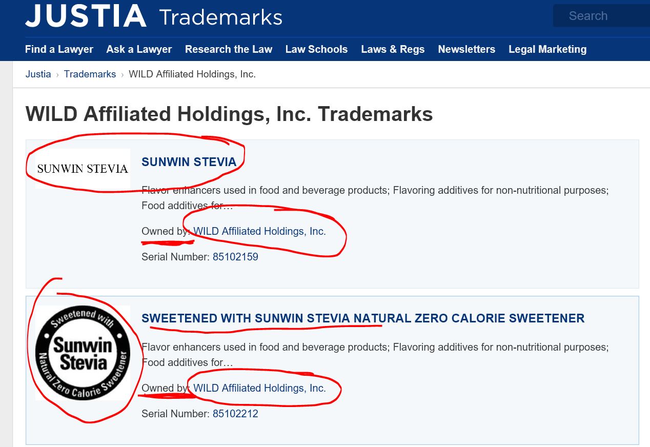 2. Die Marke "Sunwin-Stevia" incl. Logo dürfte noch immer bei WFSI liegen und damit nunmehr ADM gehören. Die Steviolglykoside von Sunwin werden dabei nicht exklusiv verwendet, sondern nur unter den Bedingungen verwendet, die in dem entsprechenden Agreement genauer aufgeführt sind.