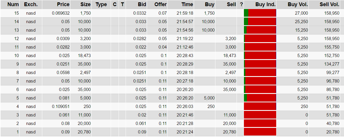 Das löchrige BID ist/war tatsächlich erschreckend. Und noch erschreckender, ...dass da jemand zu gerade einmal 0,02 € überhaupt verkauft, (...mal unterstellt, dass es sich um "echte" Trades handelt).
