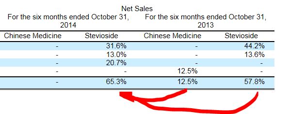 Nur Steviosid-Sparte.... Quartals-Ergebnisse: Jul.14 / Okt.14
