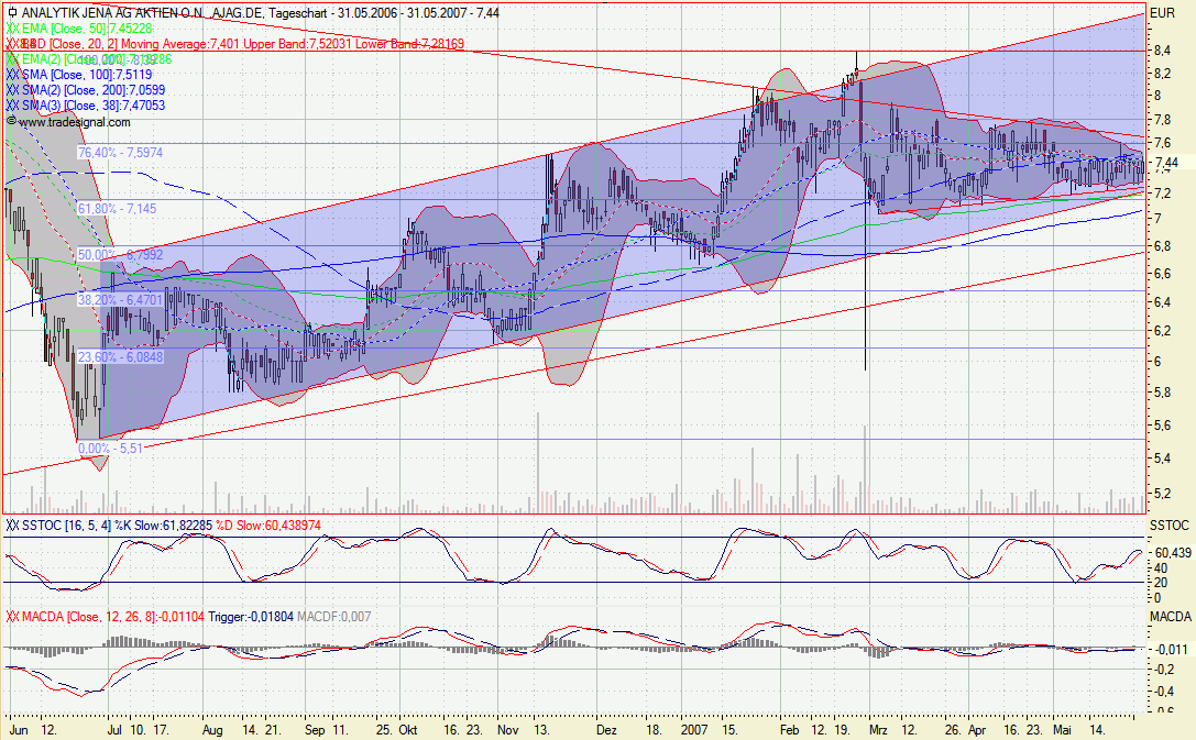 Fakt bleibt, das man allein im 1.Quartal des nächsten Geschäftsjahres (4.Kalenderquartal 2007) bereits mit einem Überschuss von 1,1 Mio € (23 Cents pro Aktie) allein durch den Wegfall der Japaninvestitionen und 10-15% Wachstum rechnen kann. Allein das zeigt, was für EPS-Zahlen in der Zukunft auf Jahresbasis möglich sind. Und in dieser Berechnung zum 1.Quartal sind ja spätere Effekte aus besserem Zisnergebnis, niedriger Steuerquote und möglicherweise irgendwann mal anorganischem Wachstum oder Börsengang einer Tochter noch gar nicht enthalten.