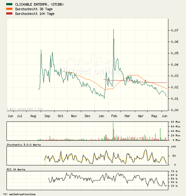 | Last: 0.014 | CKEI - CLICKABLE ENTERPRISES INC | |||||