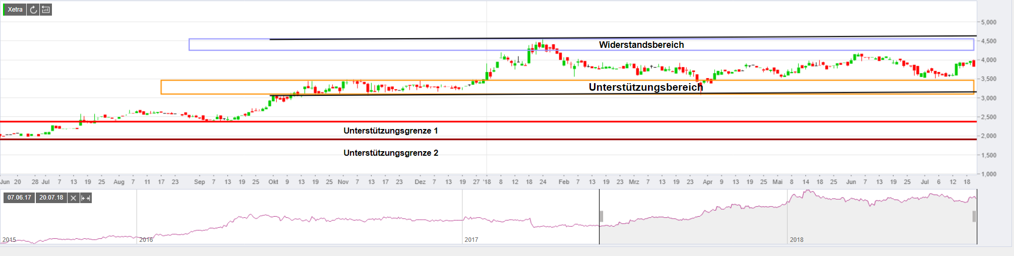 Leichter Aufwärtstrend, den Unterstützungsbereich hat der Kurs verlassen und macht sich auf den Weg zum oberen Widerstand, wenn der über 4,5 kommt denke ich das die neue Unterstützungsgrenze bei 4,25 liegt.