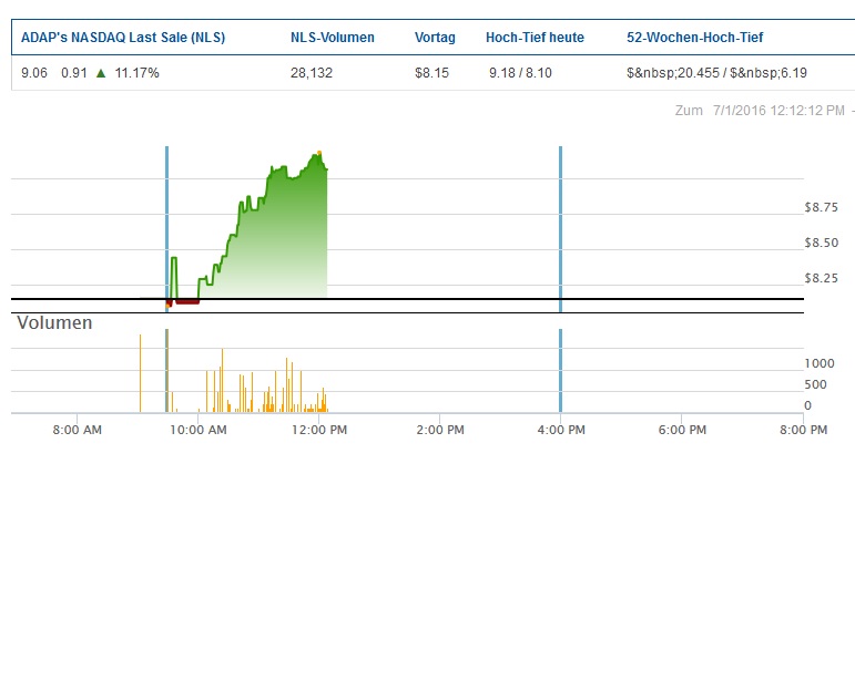 - der von der FDA angeordnete teilweise Stop der geplanten MRCLS Studie soll seine Ursache in Fragen zum geänderten, kommerziellen Herstellungsprozess und zum Studiendesign haben. Adaptimmune will die Fragen kurzfristig beantworten und hofft innerhalb von 30 Tagen auf eine Freigabe durch die FDA, um die Studie noch in 2016 zu starten. Wenn es länger dauern sollte, geht man von einer Verschiebung bis Mitte 2017 aus.