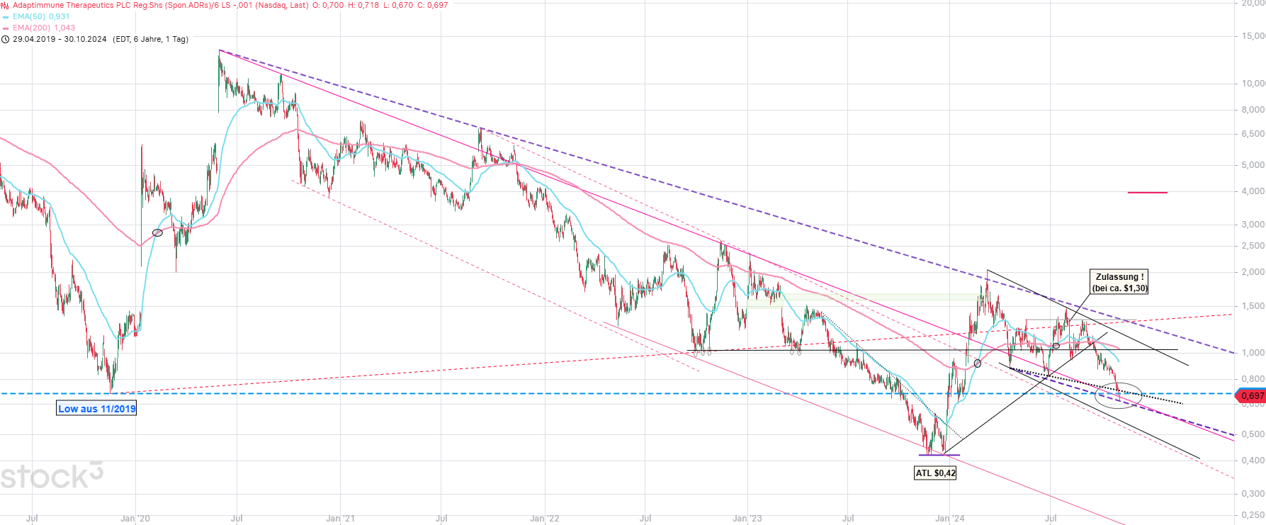 Im April 2024 präsentierte der leitende Prüfarzt der APOLLO-Studie auf dem Global Summit on Hematologic Malignancies die Ergebnisse einer Studienteilnehmerin mit follikulärem Non-Hodgkin-Lymphom, bei der 12 vorherige Behandlungsversagen aufgetreten waren, darunter mit Axicabtagene Ciloleucel (Yescarta), nach der Transformation in ein diffus großzelliges B-Zell-Lymphom (DLBCL), die jedoch mit MT-601 eine vollständige Remission (CR) erreichte und 3 Monate nach der Behandlung in CR verblieb. Ein anderer Patient mit DLBCL, der für eine CAR-T-Zelltherapie nicht in Frage kam, erreichte 8 Wochen nach der Behandlung eine teilweise Remission mit MT-601. Aktualisierte Daten eines dritten Patienten mit DLBCL, bei dem 4 vorherige Therapielinien fehlgeschlagen waren, darunter mit einem Anti-CD19-CAR-T-Zell-Wirkstoff, zeigten, dass der Patient 9 Monate nach der Verabreichung von MT-601 in CR verblieb.7