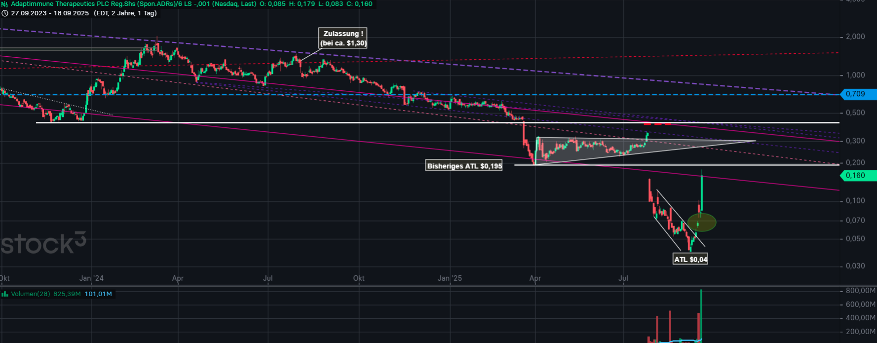 "...expects to make an announcement on the outcome of the review of strategic alternatives for the Cell Therapy Business no later than November 5, 2025,..." wenn das neue Galapagos Management in den nächsten 6 Wochen zur Entscheidung kommen sollte, sie nehmen wegen ungenügender Angebote für die eigenen CAR-T Zelltherapien selber nochmal die Chance in die Hand, dann könnte Adaptimmune mit seinen TCR-T Ansätzen als erster Partner in der Kategorie mit einem Produkt am Markt der soliden Tumore ein wesentlicher Treiber für eine breitere Aufstellung am Markt sein, der die Pipeline mit PRAME und CD70 sowie allogenen Zellen weiter voranbringt. Uza-cel wäre dann nicht nur ein möglicher Meilenstein aus dem US Worldmeds Notverkauf der Adaptimmune, sondern ein potentiellerTüröffner für einen Merger mit der Galapagos Zelltherapiesparte.