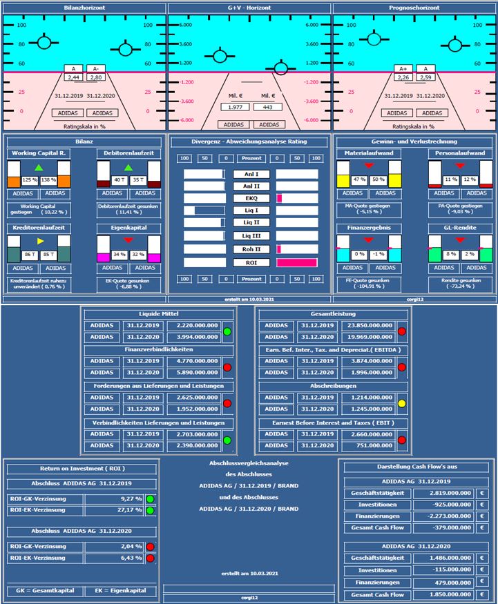 Resume: Zwei bilanziell starke Unternehmen, wobei Puma mehr bilanzielle Stabilität auszeichnet und Adidas aus 4 bis 5- facher Gesamtleistung relativ höhere Jahresüberschüsse erzielt.