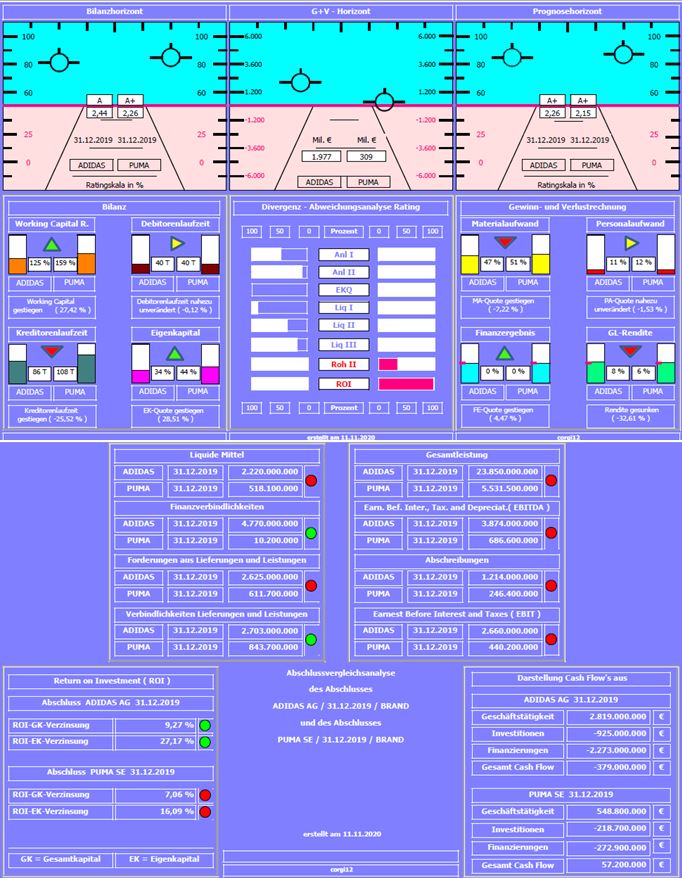 Betriebsvergleiche geben insbesondere bei Unternehmen mit "indentischem" Geschäftsfeld Sinn, um Stärken und Schwächen auf einen Blick zu erkennen. Dies sollte bei Adidas und Puma gegeben sein.