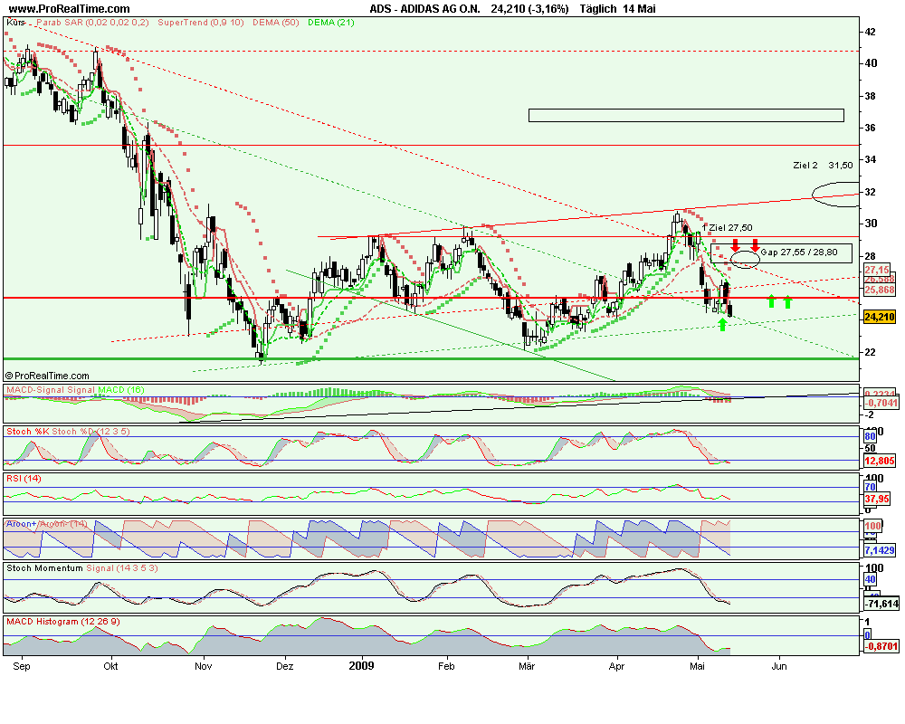 Das Konzernergebnis im ersten Quartal habe die Erwartungen der Investoren verfehlt. Damit materialisiere sich beim Sportartikelriesen das von den Analysten erwartet schwierige Umbruchsjahr. Allerdings biete die aktuelle Wirtschaftssituation die Möglichkeit, Problemfelder (u.a. Reebok) und Organisation kräftig umzukrempeln. Selbst das an sich solide adidas-Segment werde zwar im heurigen Geschäftsjahr einige Schrammen abbekommen. Allerdings würden die Analysten glauben, dass ein globaler Wirtschaftsaufschwung, sportliche Großereignisse und eine schlankere Organisationsstruktur auf mittlere und längere Sicht wieder ein kräftiges Aufwärtspotenzial bedeuten würden.