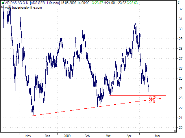 Frankfurt (BoerseGo.de) - Die Aktien von adidas können sich heute gegen den schwachen Markttrend behaupten und aktuell um 1,40 Prozent auf 23,25 Euro zulegen. Für Phantasie sorgen neuerlich aufgekommene Gerüchte. Demnach könnte der US-Konzern ein Übernahmeangebot für den fränkischen Sportartikelhersteller vorlegen. Im Raum steht ein möglicher Preis von 35 Euro je Aktie.