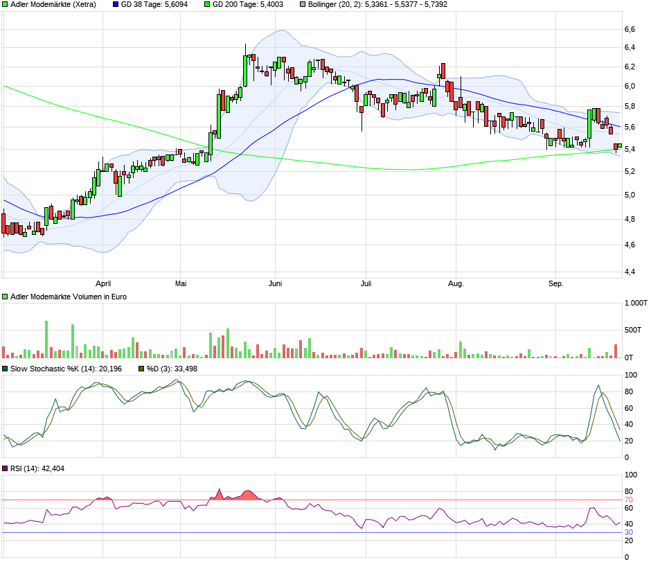 Was die Konsolidierung des Kurses angeht, verläuft bei 4,37 € die leicht steigende 200 Tage Linie. Hätte ich ganz gerne als Tief noch gesehen, aber knapp darüber bei 4,37-4,41 € sammeln sich die großen Kauforders im Orderbuch. Insofern siehts nicht so aus als würde man noch die 200TL berühren. ... Andererseits ist die Aktie am Markt so stark in Vergessenhet geraten, dass halt jetzt im Sommer auch niemand hochkauft. Daher dümpeln die Umsätze im Niedrigsbereich, und der Kurs dümpelt weiter seitwärts bis minimal abwärts. Indikatoren deuten aber zumindest an, dass wir mit der Konso zum Ende kommen. Es bräuchte jetzt wohl mal eine gute News (woher nehmen im Sommer?) oder eine Analystenempfehlung. Ist ja wieder günstig geworden, gerade im Branchenvergleich, zumal ich Adler von der Zielgruppe her ein Alleinstellungsmerkmal zugestehe. Im Grunde das einzigste Unternehmen, dass sich aus der Branche noch fast ausschließlich um die Gruppe über 45 Jahre und mittlerem Geldbeutel kümmert. Da gab es in einer Präsentation mal ne schöne Graphik. Solange man es schafft, auch im Onlinehandel zukünftig präsent zu sein, bin ich eigentlich ganz optimistisch, dass Adler der Rentabilitätsniveau mit 30-35 Mio Ebitda (vor Sondereffekten) mindestens halten kann. Und dann wäre man (da ohne Nettoverschuldung) mit EV/Ebitda von weniger als 3,5 sehr günstig bewertet, was auf gute Cashflows und Dividenden hinauslaufen würde.