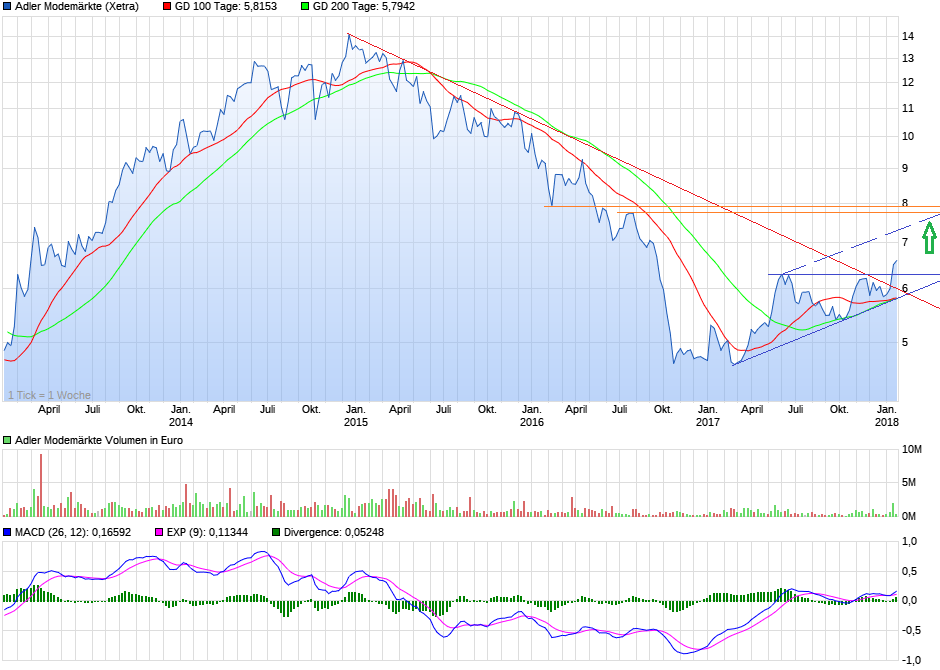 Was ich auch glaube ist, dass 2017 gut lief. Vielleicht hat man den Analysten gesagt, dass die Einzelhandelsumsätze in der Textilbranche um 5-6% gestiegen sind, wie kürzlich ja von der Branche bekannt gegeben wurde, und das Adler davon in Q4 sehr zufriedenstellende profitieren konnte. Da Q4 ja für die Branche und Adler sehr wichtig ist, hängt halt viel davon ab. Ansonsten ist das Forderungsmanagement noch wichtig. Wenn Adler beim Cashflow in Q4 entsprechend performen konnte, ergibt sich eine sehr gute Bilanzsituation mit faktisch kaum Nettoverschuldung. In 2018 könnte sie theoretisch in ein leichtes Nettocash-Polster drehen. Das ist in der Branche auch nicht selbstverständlich, und es lässt vor allem Investitionen zu, beispielsweise in neue Märkte.