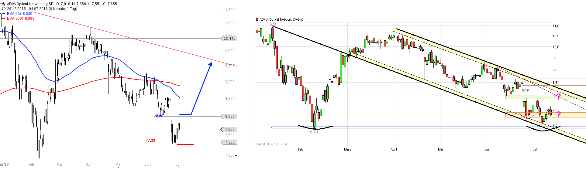 Nochmal zum 21.07.: letztendlich ist der Q2 Umsatz fast irrelevant, er wird wesentlich höher als in Q1 ausfallen, da es ansonsten Ende Juni/Anfang Juli eine Umsatzwarnung gegeben hätte (also 145-155 Mio. Euro). Die Marge ist mit 1-4% prognostiziert, also auf dem Niveau von Q1. Die sollte auch in diesem Bereich liegen. Bzgl. Ausblick erwarte ich für Q3, dass die Umsätze irgendwo im Bereich von Q2 liegen. Es kann hier nach 1-2 Schritten vorwärts auch mal wieder ein Schritt zurück geben, aber über die Quartale und Jahre hinweg gesehen sollte es mittelfristig weiter hoch gehen. Der Druck bei den Kunden, die Netze auszubauen, und ADVA hat technologisch führende Produkte mit wenigen Konkurrenten auf Top-Niveau (z.B. Infinera). Trotzdessen wird es auch weiterhin Preiskämpfe geben. Das wird dazu führen, dass man bei ADVA nie Margen, von weit über 10% erreichen wird, dafür fehlen die absoluten Alleinstellungsmerkmale. Aber man sollte sich in naher Zukunft den 10% annähern können und diese auch übertreffen können. Die Frage ist nur wie nachhaltig dies möglich ist. Und da bin ich der Meinung, dass man eigentlich ständig weiter in neue Innovation investieren muss, um an der Spitze zu bleiben. Daher wird die Marge zyklisch nach oben aber auch wieder mal nach unten gehen. Ganz einfach, weil man manchmal in einem kleinen Zeitraum größere Investitionen tätigen muss, welche sich dann erst über Quartale und Jahre in Umsätze und Gewinne auszahlen.