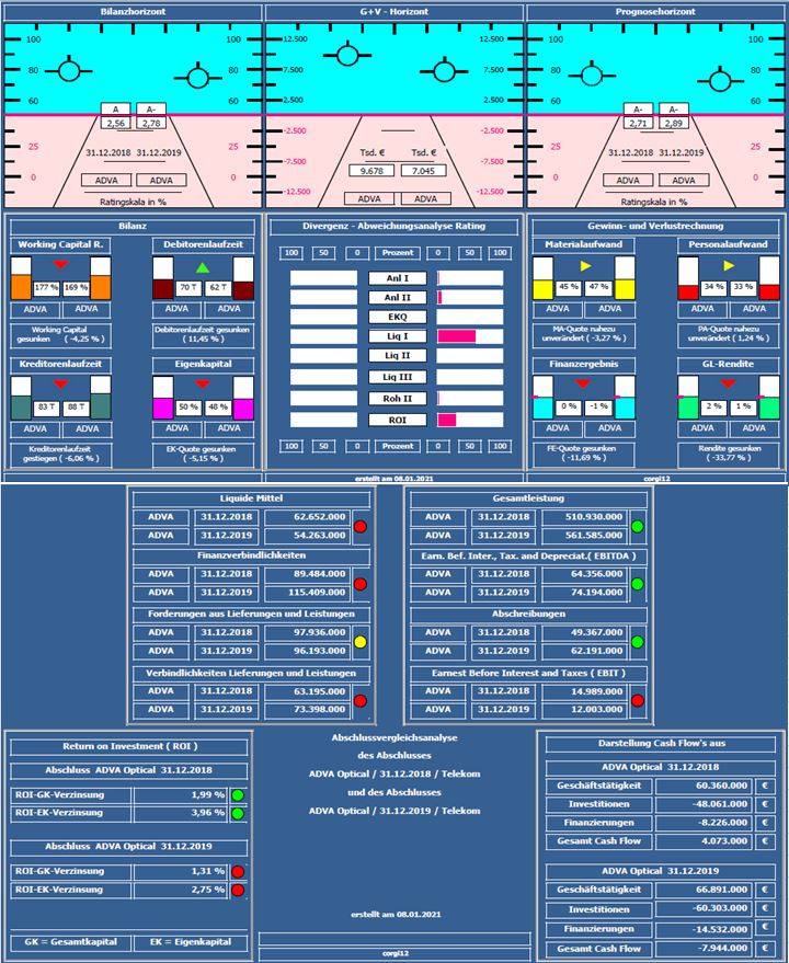 Negativ: Rohertrag II-Quote konnte nicht ganz an das Gesamtleistungswachstum angepasst werden. Eigenkapitalquote durch die erstmalige Aufnahme von Leasingverbindlichkeiten ( 34 Mill. € ) minimal nachlassend. Liquiditätskennzahl I durch verminderte Liquide Mittel (-12Mill. €) gefallen.
