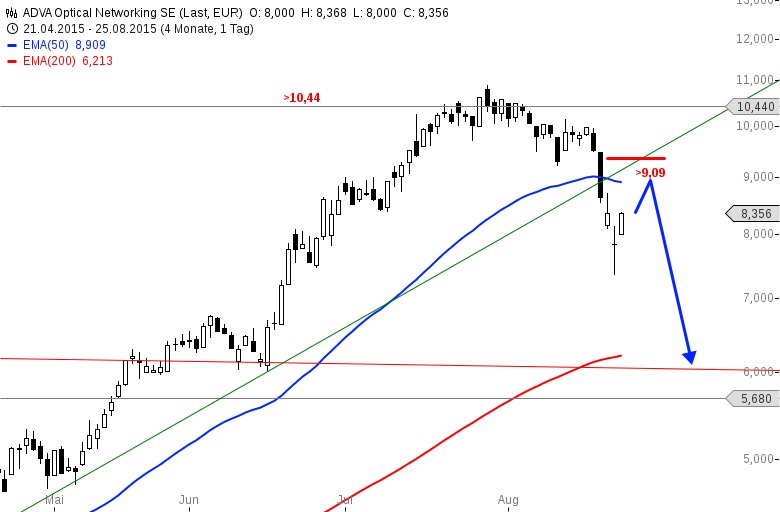 liegt im Xetra bei 5,28 die 100GD bei 7,34 im Schlusskurs ist sie heute nicht gefallen. Bin jedoch überzeugt dass beide demnächst noch getestet werden. Wie erwähnt bin ich bei stop 8,90 rausgedrückt worden.Hätte gerne aus einen Kurs von 9,00€ und meine Anteile noch im Depot. So wie es momentan ausschaut ist es wohl besser das Pulfer trocken zu halten und die Trendwende abzuwarten. So schnell wie der Kurs jetzt runter rauscht so schnell kommt dann auch wieder die Gegenbewegung. Wann es soweit ist steht in den Sternen. Jetzt werde ich nicht ins fallende Messer greifen, das Tief erwarte ich knapp unter der 200GD.