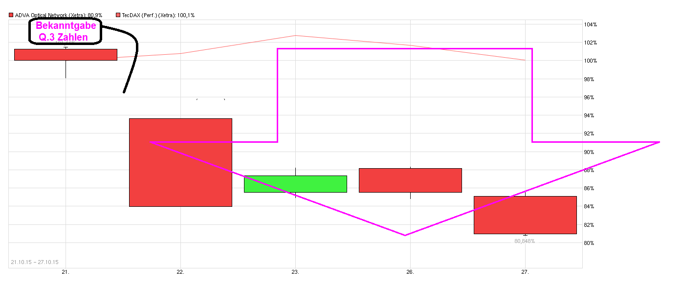 Jedenfalls habt ihr beide irgendwo recht. InvestResearch hat sich auf die Zahlen bezogen und die kann man nicht bemängeln. Der Ausblick hat sich halt leider nur auf Q4 bezogen und dafür wurde man abgestraft. Das heißt aber nicht, dass man 2016 nicht wachsen wird. Insofern kann das alles ganz schnell wieder obsolet sein und der Kurs nach oben streben. Derzeit halt technisch/psychologisch etwas blöd, weil man zwischen 9 und 10 € gefangen ist. Die Shorties wollen sie unbedingt auf 8,8-9,0 € zur Unterstützung treiben, obwohl Adva eine der günstigsten TecDax Werte ist und deshalb Gegenwehr der Bullen vorhanden ist. Aber die Bullen kaufen auch nicht überstürzt hoch, weil man für prozyklische Kaufsignale erst wieder über 10,1 € müsste. Deshalb hat man derzeit so eine merkwürdige Pattsituation im Chart. Ich merke es ja auch an mir. Ich warte einerseits sehnsüchtig auf Kurse von 9,0 € um nachkaufen zu können. Andererseits erwarte ich fundamental betrachtet eigentlich steigende Kurse, kaufe aber noch nicht solange man die 10 € nicht wieder signifikant überwindet.