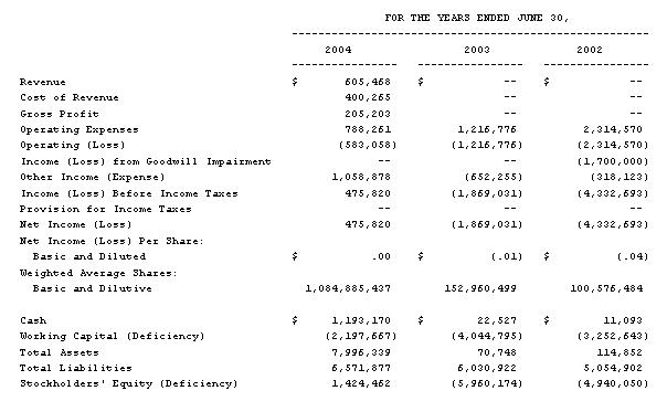 Wayne Danson, the Company's President and Chief Financial Officer said, "We hope that our investors will find the information available on the new website helpful." Danson continued, "With all of the new and vital activities that transformed the Company over the past year, from a single technology company with no revenue to an expanding business enterprise with over $8,000,000 in assets, we deemed it important to provide our shareholders and the general public with an effective channel to as much current information about the Company as possible."