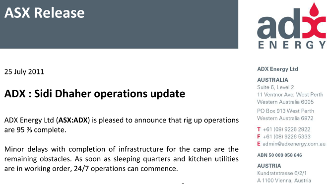 Hmm das sollte doch aber heißen, dass ADX mit dem Aufstellen des "Rigs" zu 95% fertig ist. Somit kann die Bohrung sehr bald beginnen.