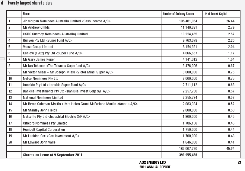 Erstaunt hat uns allerdings der HSBC Anteil, über den die Europäischen Aktien "gehalten" werden. Verglichen mit den Volumina, die allein in Frankfurt in der letzten Zeit getätigt wurden, müssten alle "Kurzzeittrader" von ADX über Frankfurt engagiert sein, oder soll das bedeuten, dass die Deutschen Anleger vernachlässigbar wären? Aber, es gibt bestimmt auch Anleger, die wie die LimesInvestoren direkt in Sidney an der Heimatbörse gekauft haben.