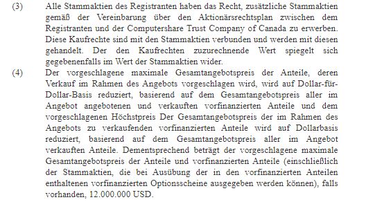 Die Vorfinanzierten Warrants erhöhen das Kapital aber nicht die Shares out.