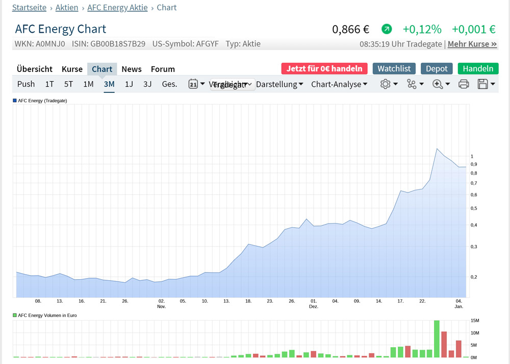 ....ist, dass irgendwie fast alle im Forum auf ihre Art und Weise Recht haben. Diejenigen, die „Long“ sind, weil sie an das Geschäftsmodell glauben. Ja, ich denke, dass AFC ein interessantes Geschäftsmodell hat, das in der allgemeinen Transformation der Energieerzeugung, -transport und -speicherung seine Nische finden wird. Auf der anderen Seite verstehe ich aber auch die Anleger, die in den letzten Wochen ausgestiegen sind, zu denen gehöre auch ich. Ich hatte hier das Glück bei EUR 0,19 eingestiegen und bei EUR 1,16 bzw EUR 1,10 ausgestiegen zu sein. Schwein gehabt! Warum bin ich ausgestiegen? Weil ich ab einem gewissen Punkt die Marktkapitalisierung betrachte und sie ganz altmodisch ins VErhältnis zu Gewinn bzw Umsatz setze. Die Marktkapitalisierung gibt ja nun üblicherweise die abdiskontierten Gewinne der Zukunft wider. AFC hatte in der Spitze eine Marktkapitalisierung größer EUR 700 Mio. Bei einem mutigen KGV von 50 würde dies ein Gewinn von EUR 14 Mio bedeuten. Bei einem aktuellen Umsatz von nahe Null und einem Gewinn von Null ist das eben eine sehr sehr hohe Bewertung, sprich die gesamte Zukunft der nächsten wieviel(?) Jahre ist darin abgebildet. Daher bin ich raus und glaube dennoch an das Geschäftsmodell, sehe darin keinen Widerspruch. Natürlich wird dann mit Bewertungen von Nel etc argumentiert. Nun ja, das halte ich offen gesagt für falsch und irrational, man sollte sich ab einem gewissen Punkt mal neben sich selbst stellen und das Unternehmen stand alone betrachten. Man könnte ja auch argumentieren, dass Wasserstoff im Verhältnis zu Krypto völlig unterbewertet ist. Egal, mir macht das Forum dennoch viel Freude, weil es viele Meinungen und Argumente gibt. Natürlich auch Emotionalitäten und Nebengeräusche, aber dennoch ein Austausch. Einschätzung zu AFC: Kurz- und mittelfristig bin ich eher zurückhaltend und glaube, dass es zu deutlichen Rücksetzern kommen kann. Zudem steht mE für den weiteren Weg noch die eine oder andere Kapitalerhöhung an. Langfristig (> 5 Jahre) kann das Kursniveau durchaus wieder in die Höhen der letzten Tage zurückkommen. Viel Glück allen! Falls ich Unrecht haben sollte, freut es mich für alle, die investiert sind!