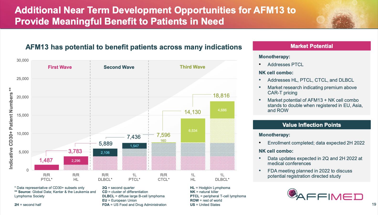 Geplant sind aktuell nur cd30+ R/R PTCL als Mono und später R/R HL in der Kombination mit NK-Zellen. Affimed gibt sehr optimisch Preise über CAR-T als möglich an.