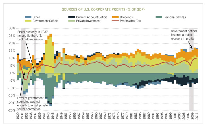 das budget deficit greift in den Konjunkturverlauf ein, nicht aber die total debt. Und hier ist zu sehen, dass via spending cuts & taxation das deficit in den letzten Jahren um gut 1 Bio $ zusammenschrumpfte - was identisch damit ist, die private Seite, demand & earnings, um eben diese 1 Bio zu belasten. Die substantielle Tilgung der total debt ist sachlich hingegen far out, denn dies würde die Privaten um gut 17 Bio belasten und damit die US auf den Stand von 1653 zurückschicken. ..