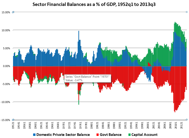 Wenn man auf die Saldenmechanik abstellen wollte, müsste man zum einen den Faktor Ausland bei seinen Überlegungen mit einbeziehen und zum anderen auch noch zwischen nominalen und realen Kaufkraftbewegungen und damit zusammenhängenden Kausalitäten unterscheiden.
