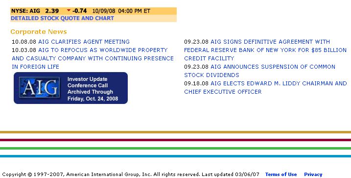 PS: Unverschämt: "Weniger als eine Woche nach der Rettungsaktion hatte AIG zudem einigen Managern einen Aufenthalt in einem kalifornischen Luxusresort spendiert. Auf der Rechnung in Höhe von insgesamt 440.000 Dollar (324.000 Euro) standen unter anderem Wellness-Behandlungen, Golf-Trips und Galamenüs. Das teilte ein Ermittlungsausschuss des US-Kongresses mit."