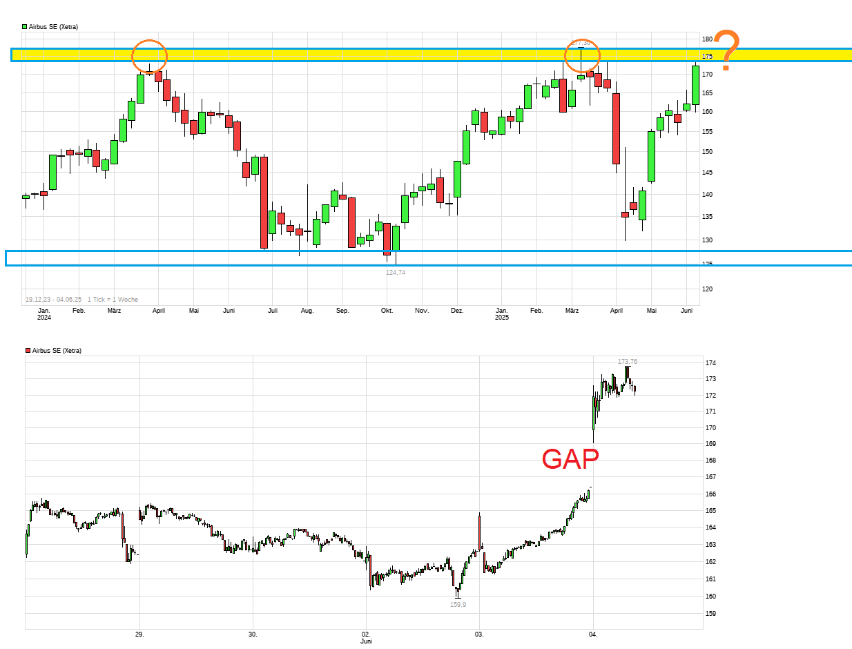 4. Juni 2025, Kreise: China erwägt Bestellung Hunderter Airbus-Jets https://www.ariva.de/news/...na-erwaegt-bestellung-hunderter-11654976 "... China könnte beim Besuch europäischer Staatsoberhäupter im Juli hunderte Flugzeuge bei Airbus bestellen. Derzeit führe der weltgrößte Flugzeughersteller Gespräche mit chinesischen Airlines zum Umfang einer Bestellung, berichtete die Nachrichtenagentur Bloomberg am Mittwoch unter Berufung auf mit der Angelegenheit vertraute Personen. Ein Auftrag könnte etwa 300 Mittel- und Langstreckenjets umfassen.