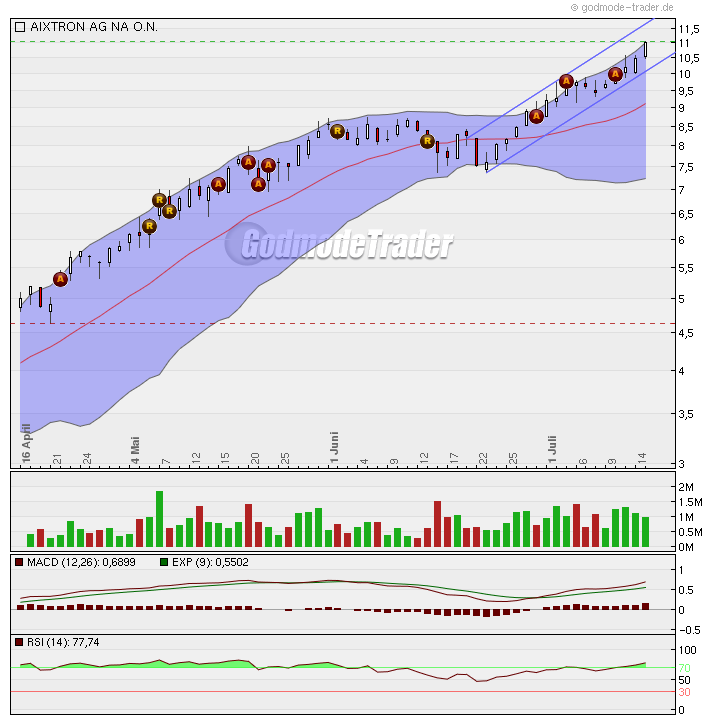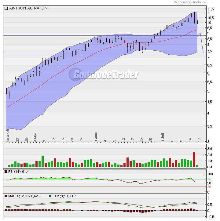 Aixtron endet bei 9,90 €, dabei wäre 10,75 € bullish zu werten, weil es sich dabei um ein Pullback handeln würde. Dies trat aber nicht ein, daher kann man weiter auf die Bearishe Karte setzen, der abverkauf und die SL dürften weiter für einen fallenden Kurs sorgen.
