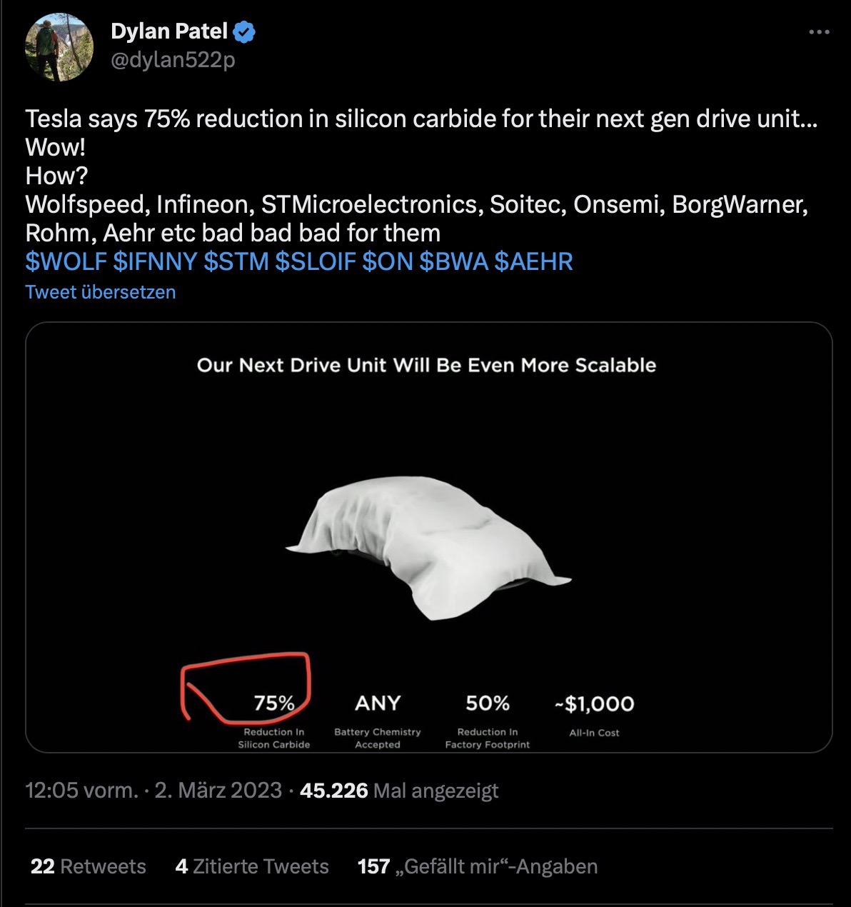 Although the traditional Si material is mature and cheap, it is always difficult to improve the heat dissipation problem, which has become an inherent obstacle and bottleneck. Therefore, if Tesla wants to greatly reduce the use of silicon carbide, it is expected that the heat dissipation improvement may be improved through the rear module side. The actual results It remains to be seen, and the industry is still dubious at this stage, and it is expected that there is little chance of overturning SiC in the short term.