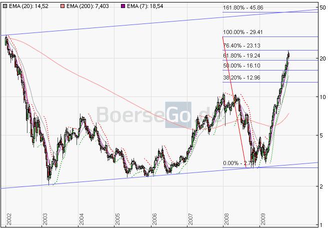 Im Gegensatz zum TecDAX hat sich aber AIX im Jahr 2009 überproportional erholt und wenn man das Weltmarktvolumen, welches hier schon wiederholt zur Diskussion gestellt wurde, berücksichtigt, bin ich guter Dinge, das ich noch die 30 Euro sehen werde.