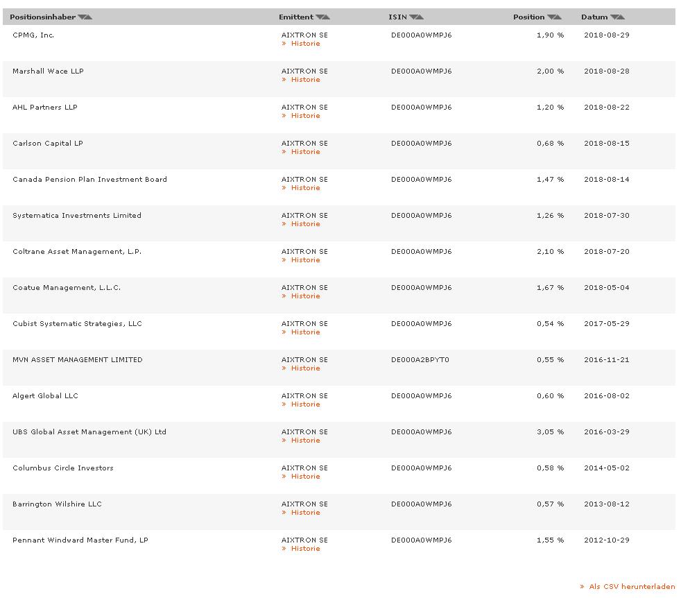 Wenn man nun zu den bisher gemeldeten 17,27% ( Quelle : shortsell.nl/short/Aixtron ) die 1,9% hinzurechnet, kommen wir auf ca. 19,17% LV Quote .... und mal sehen, vielleicht wird ja noch die ein oder andere Veränderung im Bundeanzeiger im Laufe des Tages veröffentlicht.