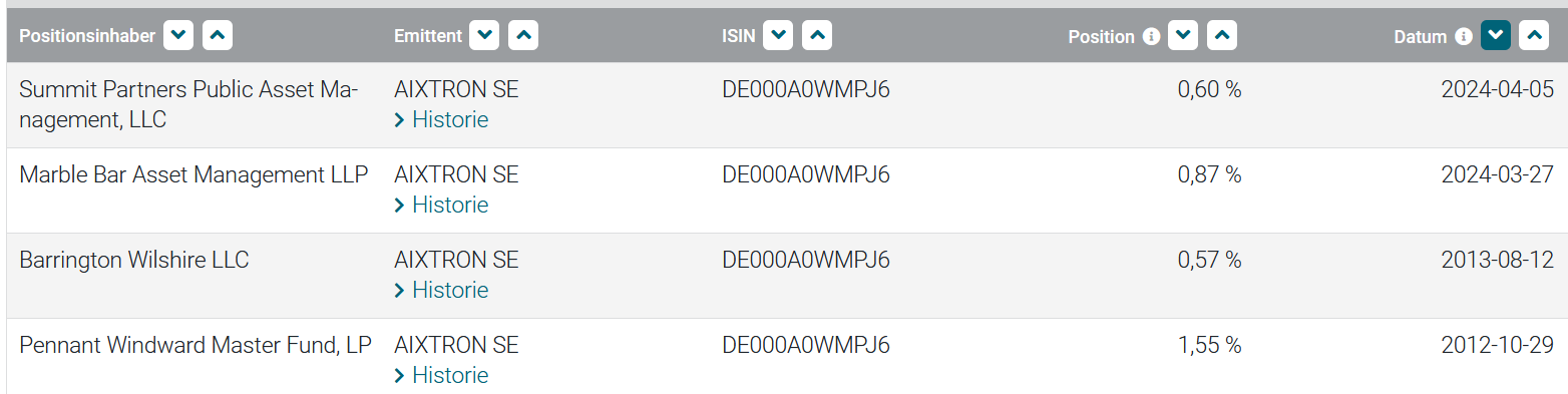 Nein, das war primär im Bezug auf Franzes Aussage, welche ich plakativ interessant und einleuchtend empfinde. Aixtron passt nun mal gut in das Beuteschema solcher Start Up Hedgies. Oder würdest du bestreiten, dass die -40% bei Kleinanlegern, die ab 25€ eine solide Rendite herausziehen wollten (Schweigeminute für alle die bei 38€ eingestiegen sind) keine dezenten Panikgefühle hervorholt? Die Kursrutsche stehen ja nicht wirklich im Verhältnis zur Nachrichtenlage, sodass die ein oder andere Strategie von Shortsellern, gepaart mit ungünstigen (nicht katastrophalen) Nachrichten, etc. aufgegangen ist. Dabei sollte natürlich das große Ganze in Betracht gezogen werden, wie du ganz richtig konstatierst.
