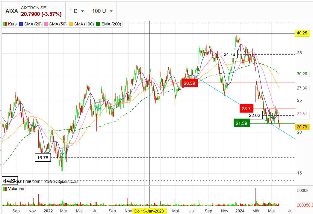 Hinzu kommt, dass die schwachen Sommermonate noch vor uns liegen und auch Q2 gemäß Ansage des CEO erst mal noch recht schwach sein wird. Fundamentale Unterstützung wird es wohl erst im 2.HJ geben. Es hat schon Gründe, warum Aixtron unter allen deutschen Aktien hinsichtlich der Shortquote trotz des massiven Kursverlusts immer noch auf Platz 6 liegt...