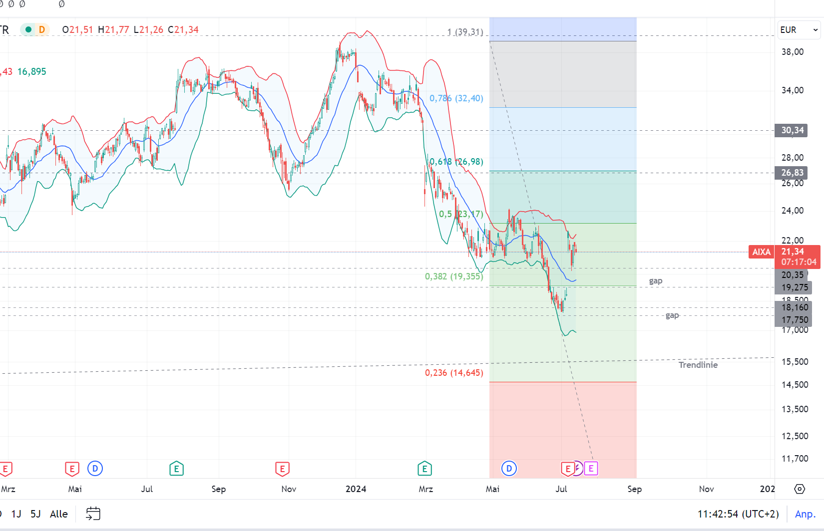 Seht mal detailliert hin, da gibt es nix, von SMA, MACD, Momentums usw. irgendetwas, das die Abwärtspattern kontern oder unsicher machen könnte.