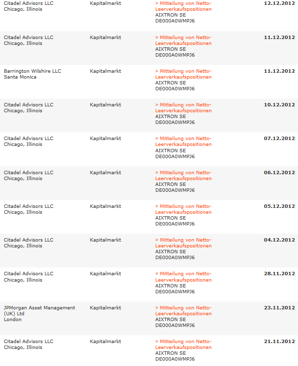 Die Leerverkäufer spielen auf den Nerven der Investierten. Natürlich läuft es nicht rund bei Aixtron. Kann man an den vergangenen Q-Zahlen ablesen. In Krisenzeiten gibts halt Krisenkurse. Und deshalb steht der Kurs auch nicht bei 40 € sondern aktuell ca 8,75 €. Ich bin bei 9,45 und nochmal bei 9,20 € eingestiegen. Als es bis auf 8,38 € gefallen ist, war bei mir immer noch alles trocken! Ich habe die Vision, dass Aixtron in spätestens 5 Jahren in den DAX aufsteigt. Aixtron hat in den letzten 13 Jahren alle Krisen überstanden und wird auch diese überwinden. Aixtron ist seit den dotcom-Zeiten eine der wenigen Erfolgsgeschichten. Siehe Historie von Pixelpark, Ricardo und 100e weiteren Nemax-Titeln die nicht mehr existieren bzw Erinnerungswerte haben. In vielleicht 3 Monaten wechselt die Angst zurück in Gier und der Kurs läuft wieder weit über 10 €. Ich verfolge die Börse aktiv und intensiv seit März 1999 und handle annähernd emotionalfrei. Den Tiefstkurs bekommt man deshalb -leider- trotzdem nicht. Für mich immer wichtig: Analysten sind keine selbständigen Unternehmer sondern Interessenvertreter für Geldgeber. Sind deshalb Trendverstärker bei Angst und Gier!