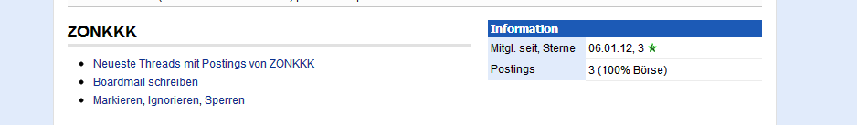 | Wertung | Antworten | Thema | Verfasser | letzter Verfasser | letzter Beitrag | |
