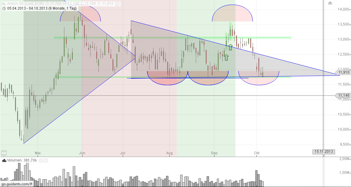 Ohne neue fundamentalen News stand der Kurs am 11.09.2013 bei 13,02 €. Und schon ging die pusherei los.