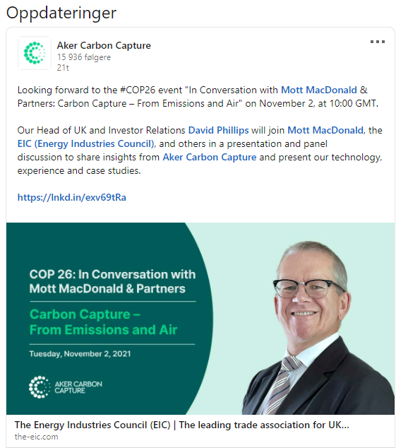 Premierminister Jonas Gahr Støre hat gegenüber norwegischen Medien angekündigt, die norwegische Klimafinanzierung für Entwicklungsländer innerhalb von fünf Jahren zu verdoppeln – von sieben auf 14 Milliarden NOK jährlich. „Mit dieser Entscheidung, die Hilfe bis 2026 zu verdoppeln, wird die Bekämpfung des Klimawandels in den kommenden Jahren eine wichtige Investition in die norwegische Entwicklungspolitik sein“ sagt Støre in einem Interview mit VG. Støre kündigt außerdem an, dass der Ölfonds Government Pension Fund Global „der weltweit führende Fonds für das Management von Klimarisiken“ werden soll. „Ich möchte nach Glasgow eine klare Botschaft bringen, dass Norwegen alles tun wird, um das 1,5-Grad-Ziel zu erreichen“, fügt Støre hinzu. Er unterstreicht weithin, dass die norwegische Investition in die Kohlenstoffabscheidung und -speicherung erfolgreich sein muss, um das 1,5-Grad-Ziel zu erreichen.