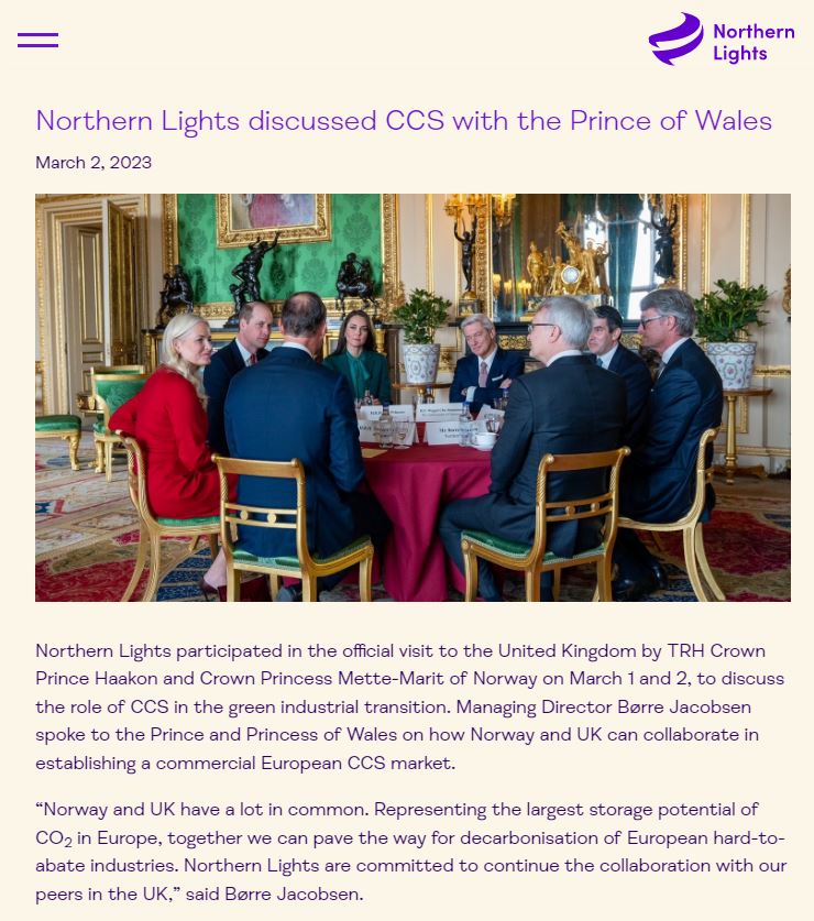 Norwegens nationale Bemühungen um CCS heißen „Longship“ und sind ein seltenes Beispiel für eine Zusammenarbeit in so großem Umfang zur Verfolgung von Klimazielen. Vertreter der norwegischen Regierung, Aker Carbon Capture, drei Öl- und Gasunternehmen, Norcem und Microsoft gehören zu den unterschiedlichen Akteuren, die zusammenarbeiten, um ein System zur Abscheidung, zum Transport und zur Speicherung von Kohlendioxid zu schaffen. (Northern Lights, ein Joint Venture von Shell, Equinor und TotalEnergies, wird das Kohlendioxid transportieren und speichern.)